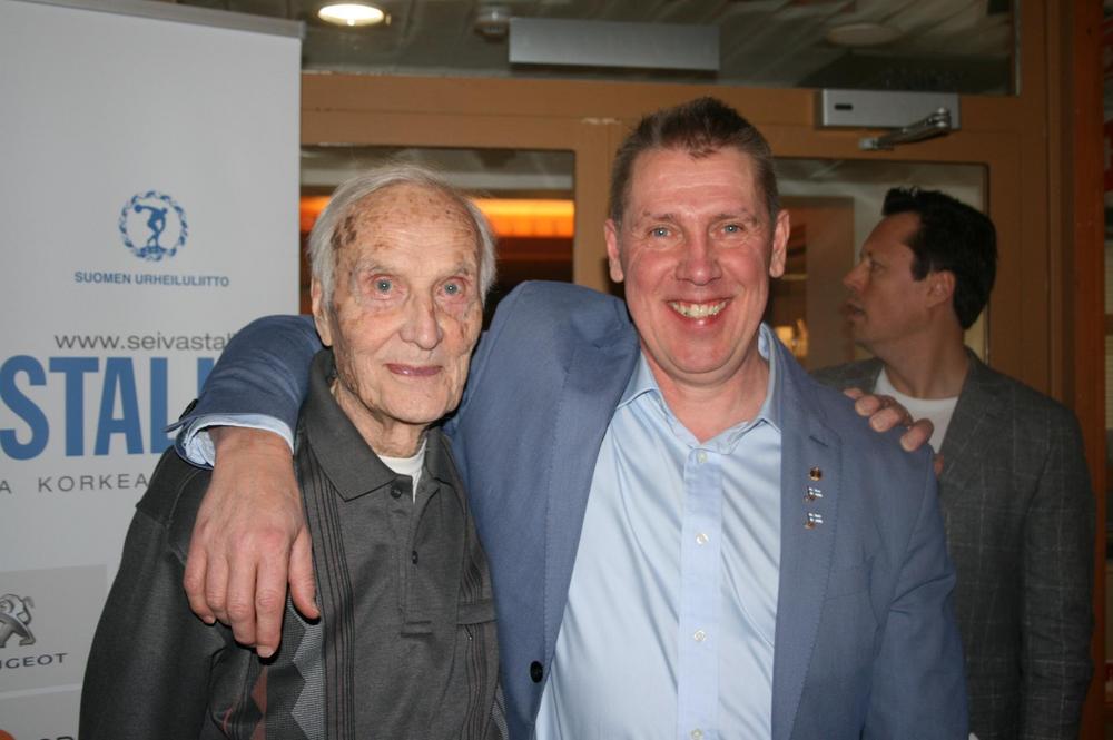 Seiväshypyn olympiafinalistit Matti Sutinen ja Asko Peltoniemi seiväshypyn Hall of Fame -kunniakerhoon
