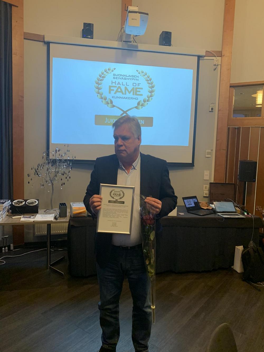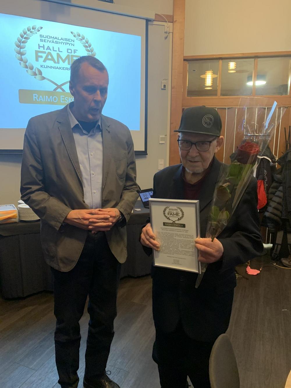 Seiväshyppyä urheilijana, valmentajana ja monella muulla tapaa edistänyt Raimo Eskola sekä ex-seiväshyppääjät Kimmo Pallonen ja Jukka Piironen (11.8.1925–5.3.1976) valittiin seiväshypyn Hall of Fame -kunniakerhon jäseniksi Liikuntakeskus Pajulahdessa Lahden Nastolassa lauantaina.
