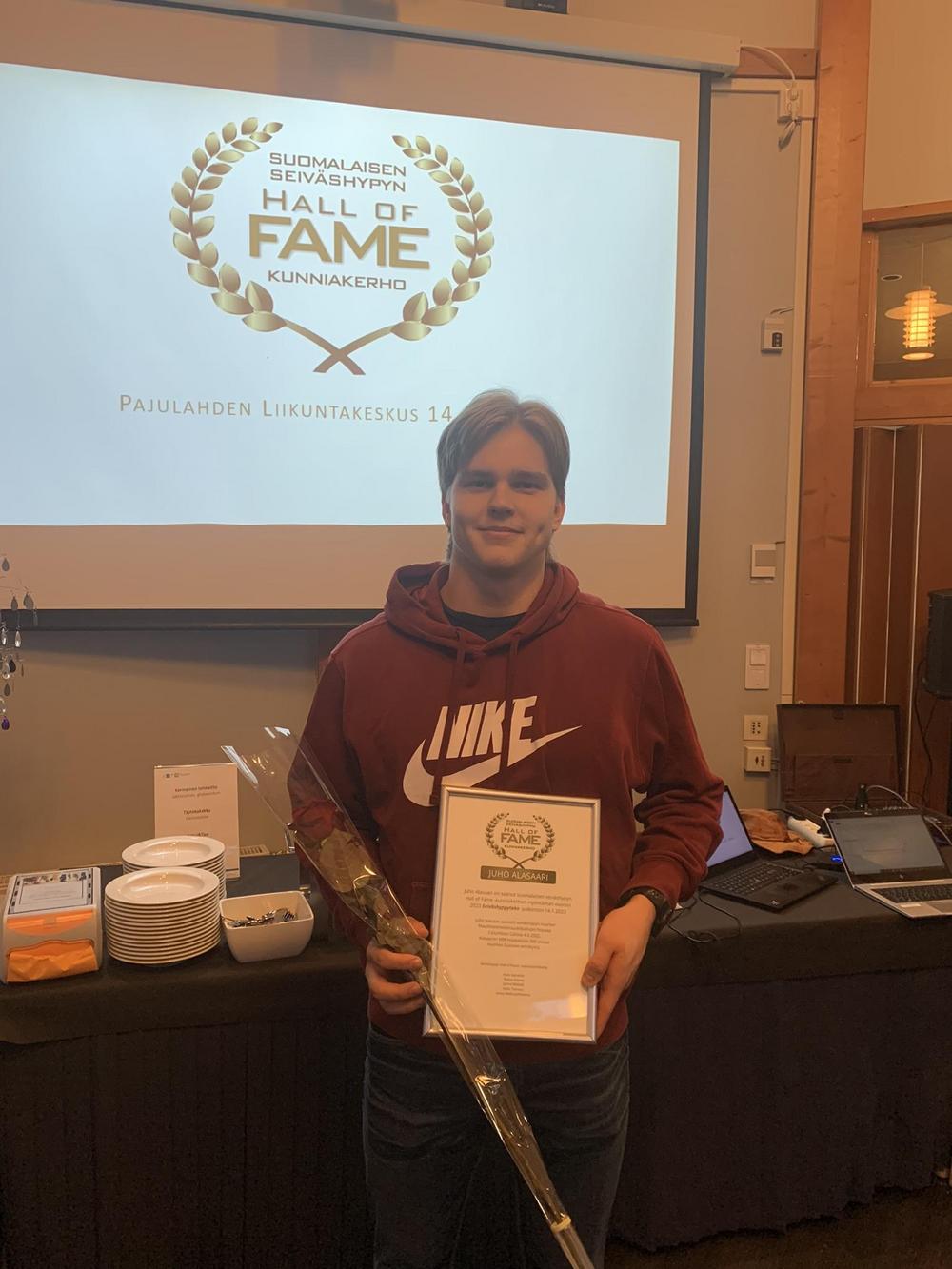 Samassa tilaisuudessa seiväshypyn Hall of Fame palkitsi Euroopan mestaruuden Münchenissä voittaneen Wilma Murron ja alle 20-vuotiaiden MM-hopeaa taivuttaneen Juho Alasaari Vuoden 2022 seiväshyppyteko -kunniakirjalla.
