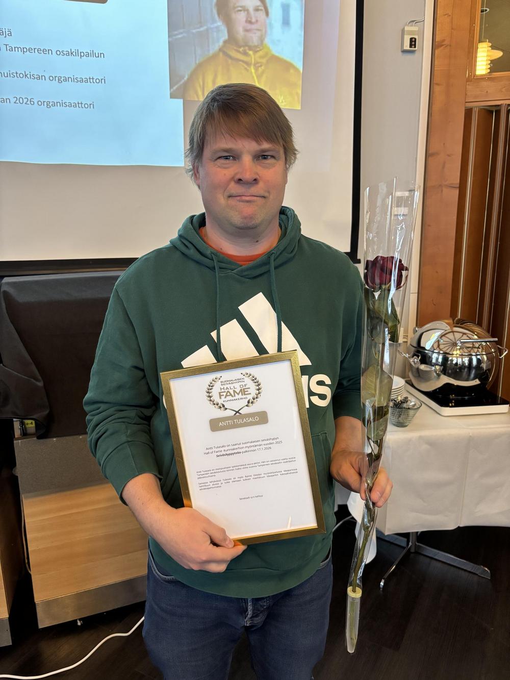 Tampereen Pyrinnön seura-aktiivi Antti Tulasalo palkittiin vuoden seiväshyppyteko -palkinnolla