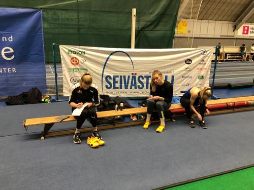 Myös Elina Lampela paransi halliennätystään ylitettyään 440. Ylitys oli todella väljä ja siitä paistoi läpi parantunut tekniikka. Kovan itsekritiikin omaaava Elina oli itsekin 440 hyppyyn tyytyvöinen ja pahoitteli ainoastaan sitä, että ero Wilmaan jäi turhan suureksi vielä tällä kertaa. ”Elinan juoksutekniikka on parantunut, vauhti kiihtyy nyt loppuun asti. Vain pieni aristelu jäykemmän seipään kanssa esti 450 ylityksen, mutta potentiaalia on selvästi parempaan”, kertoi valmentaja Rauli Pudas.